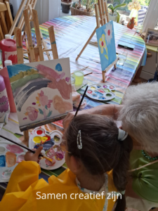Hoe leuk is dat! Samen tekenen of schilderen onder begeleiding van Astrid èn geheel verzorgd.